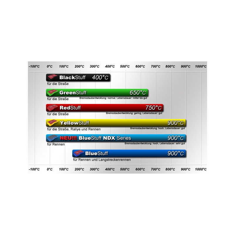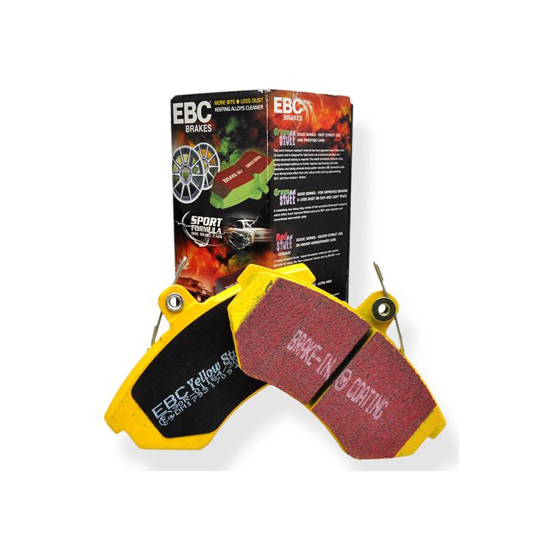 Bereits bei kalter Bremse bietet dieser Bremsbelag hervorragende Verzögerungswerte. Mit zunehmender Temperatur wird der “Biss” dieses Sportbremsbelags dennoch deutlich aggressiver, was zu noch besseren Verzögerungswerten führt. Aufgrund der ”weichen“ Belagsmischung können Yellowstuff Sportbremsbeläge schnell eingefahren werden und sind äußerst bremsscheibenschonend. Trotz einer langen Lebenszeit verursacht dieser Sportbremsbelag ein hohes Bremsstaubaufkommen, jedoch entsteht wie bei allen EBC Bremsbelägen kein aggressiver Bremsstaub. Wie alle EBC Bremsbeläge im Automobilbereich sind auch alle EBC Yellowstuff Sportbremsbeläge mit einer Einbremsbeschichtung, gebrochenen Kanten, einer Hitze-Nut sowie einer Pulverbeschichtung versehen.